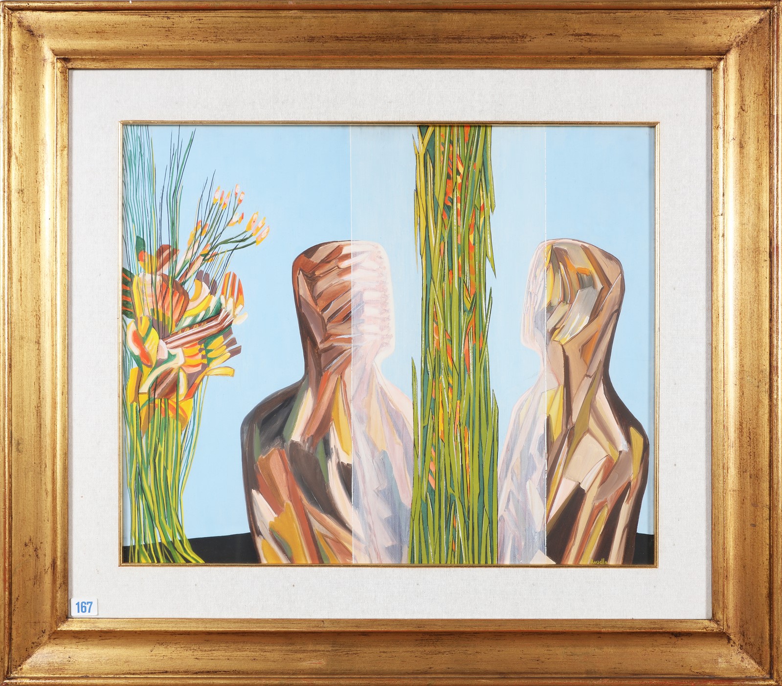 ROSSELLO MARIO (1927 - 2000) Figura con fiori. Olio su tela. Cm 60,00 x 50,00. Firma in basso a destra. Cornice presente