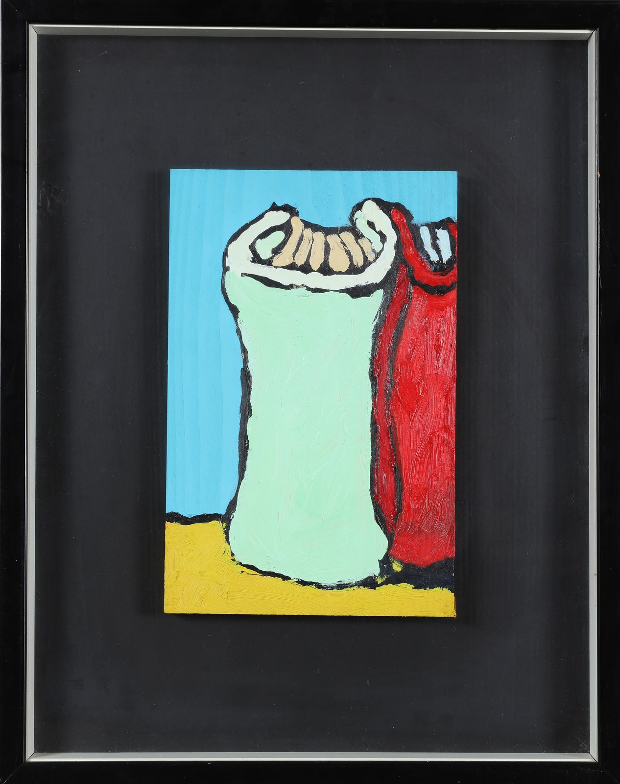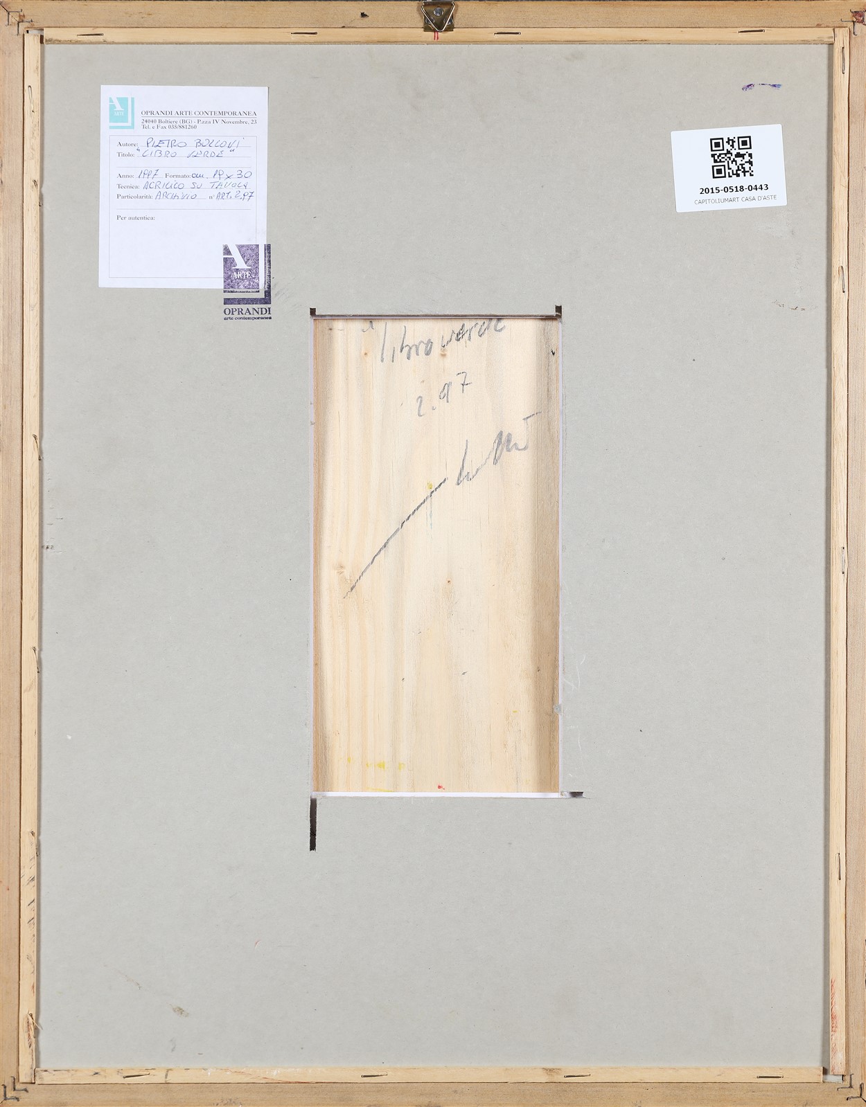 BULLONI PIETRO (n. 1947) Libro verde. 1997. Acrilico su tavola. Cm 19,00 x 30,00. Al retro: titolo, firma, anno e cartiglio descrittivo a cura di Oprandi Arte Contemporanea, Boltiere (Bergamo). Cornice presente