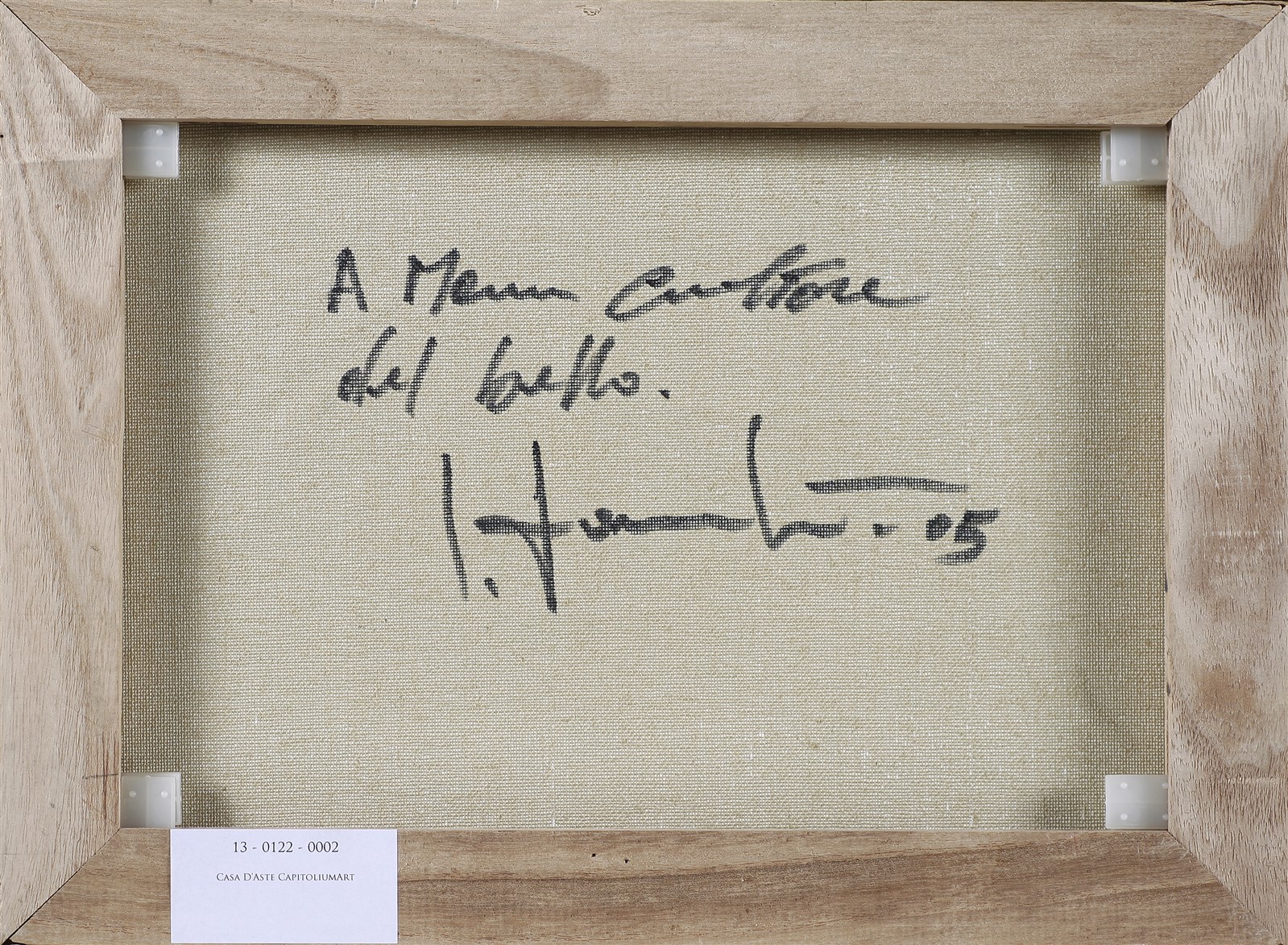 FORMICHETTI SILVIO (n. 1969) Senza titolo. 2005. Olio su tela . Cm 40,00 x 30,00. Firma in basso a destra. Al retro dedica, firma e data. Autentica dell'artista su fotografia.