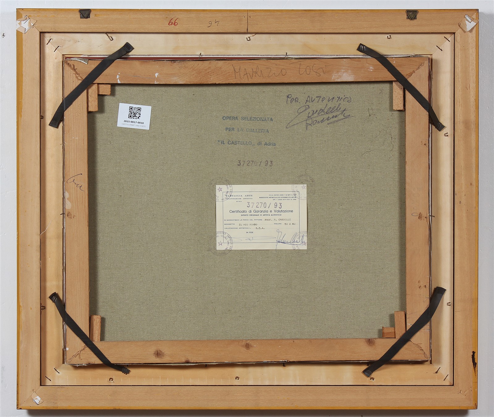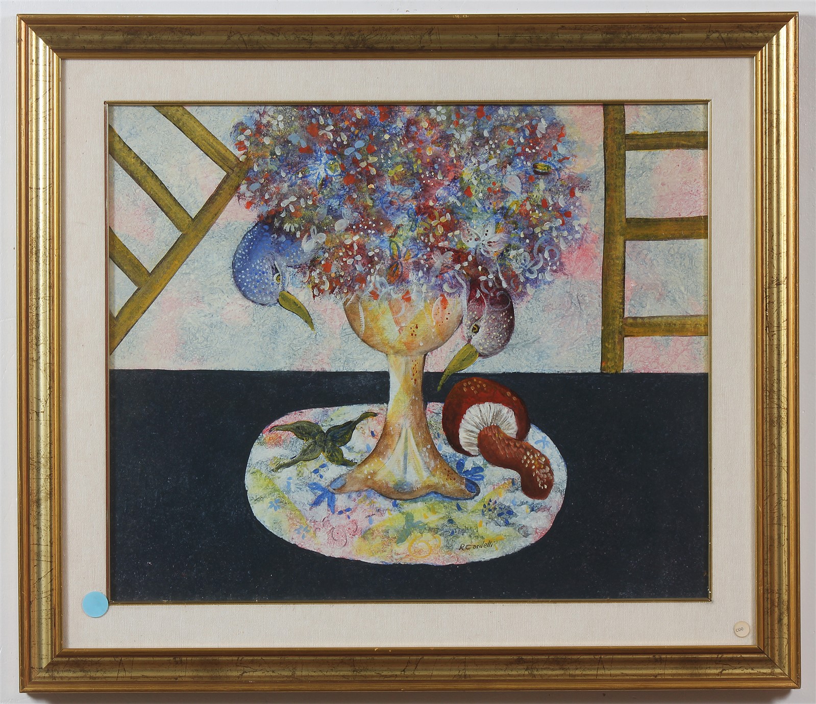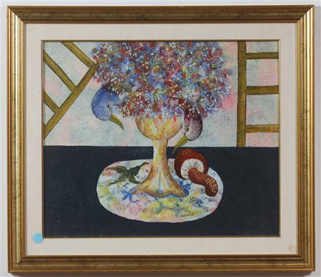 CARDELLI RAIMONDO (1938 - 2008) Il mio mondo. Olio su tela . Cm 60,00 x 50,00. Al retro frima. Cartiglio di garanzia e timbro a cura di Tartaglia Arte, Roma. Attestato di provenienza a cura di Galleria d'Arte il Castello, Adria. Cornice presente