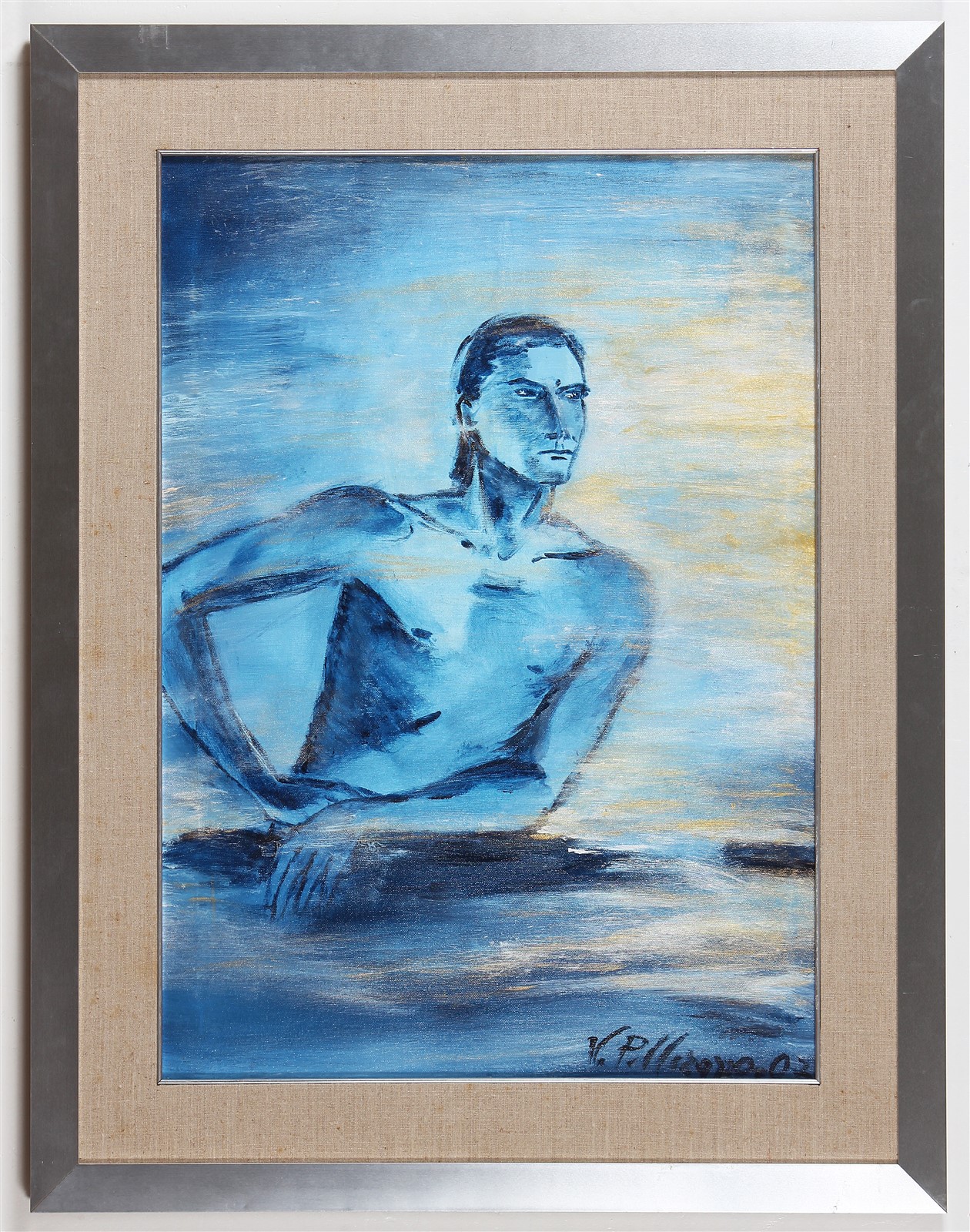 PELLERANO VALENTINA Ritratto di Roberto. 2007. Olio su tela . Cm 50,00 x 70,00. Firma e anno in basso a destra. Al retro firma, anno e certificato di autenticità a cura dell'artista Valentina Pellerano. Cornice presente