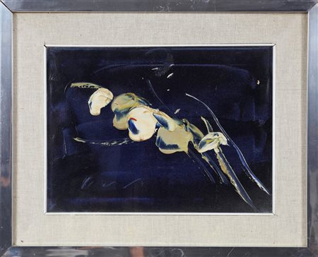 ORTEGA (ALFREDO MERLINI) Senza titolo. Olio su tela. Cm 40,00 x 30,00. Firma in basso a sinistra e al retro. La tela presenta un piccola mancanza di colore in alto a sinistra. Cornice presente