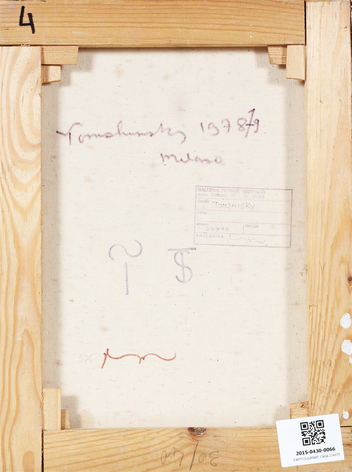 TOMSHINSKY STANLEY (1935 - 2004) Senza titolo. 1978. Olio su tela. Cm 30,50 x 40,50. Al retro firma, anno e timbro descrittivo a cura della Galleria Ferrari, Treviglio.