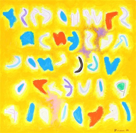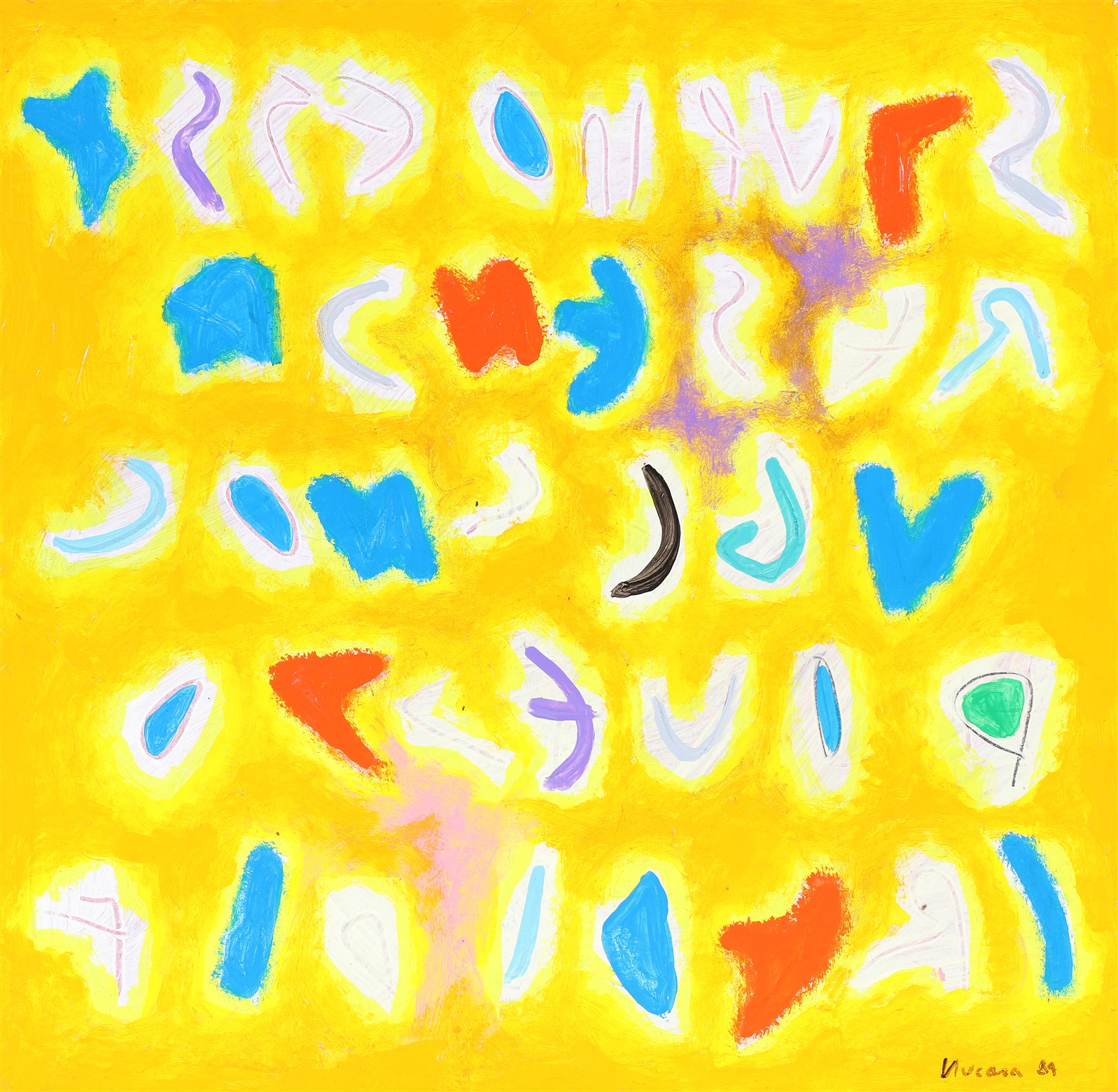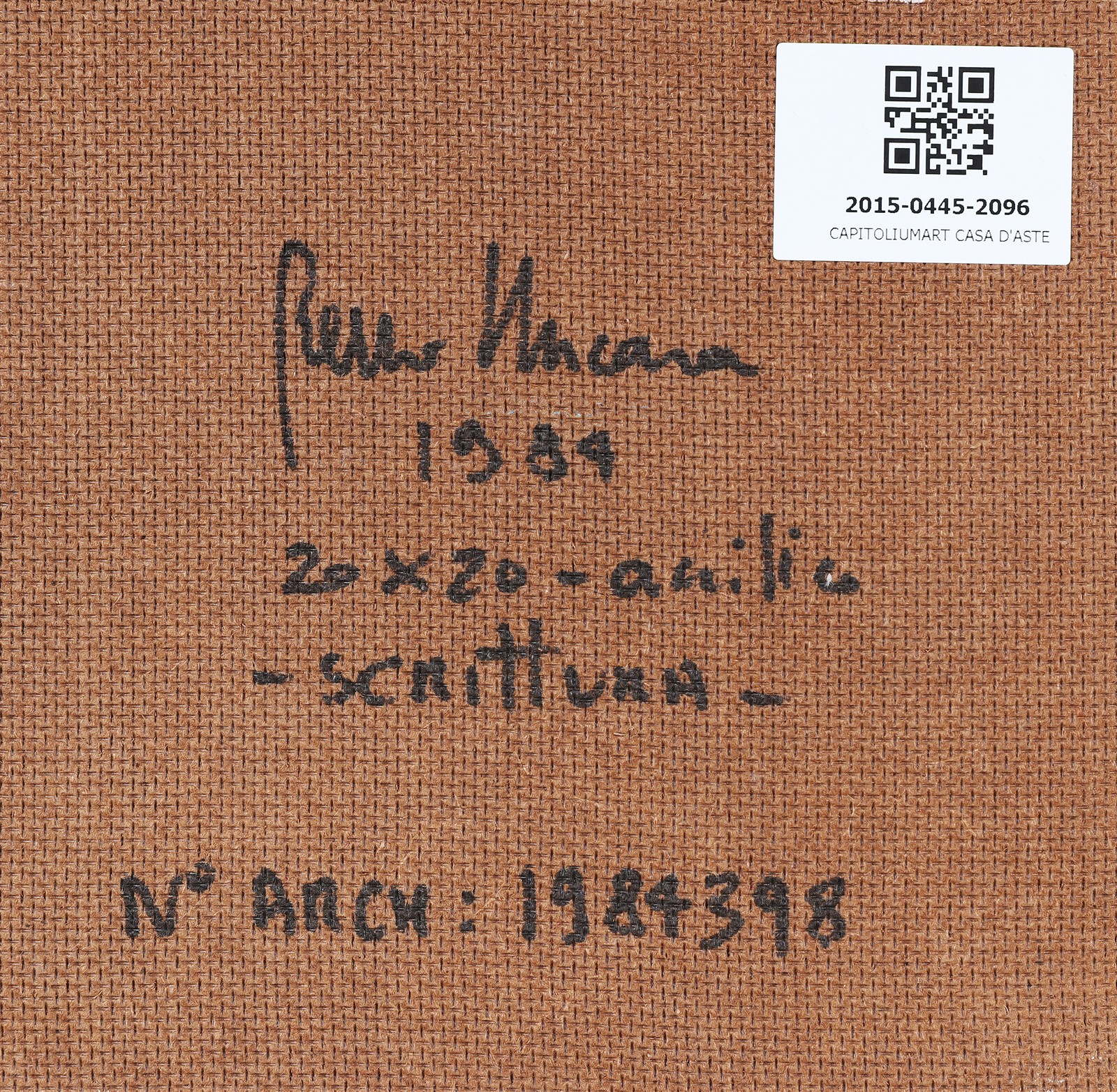 NUCARA RENZO (n. 1955) Scritture. 1984. Tecnica mista su carta. Cm 20,00 x 20,00. Firma e anno in basso a destra. Al retro titolo, firma, anno e relativo numero d'inventario. Autentica dell'artista su fotografia riportante il relativo numero d'inventario.