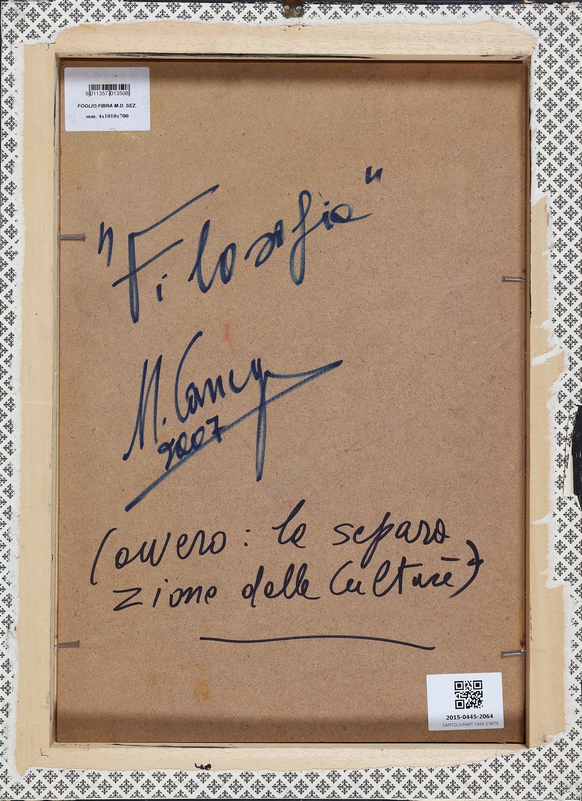CARREGA UGO (n. 1935) Filosofia. 2007. tecnica mista su tela applicata su...