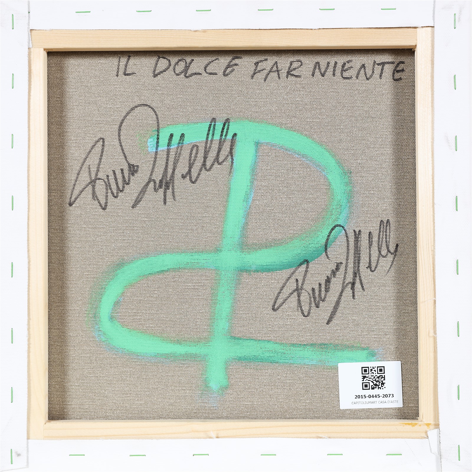 ZAPPELLA PIERINO (n. 1946) Il dolce far niente. Olio su tela. Cm 40,00 x 40,00. Al retro titolo e firma.
