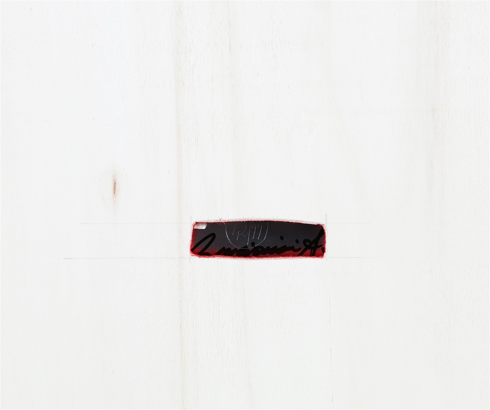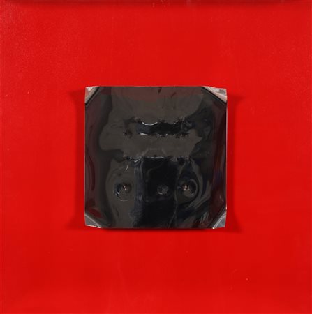 BRESCIANINI ANGELO (n. 1948) Senza titolo. Intervento su lamiera. Cm 20,00 x 20,00. 42/99. Firmata al retro. Opera contenuta in teca di plexiglass. Autentica dell'artista su fotografia a cura di Minotauro Fine Art Gallery, Palazzolo sull'Oglio (Bs). Cornice presente