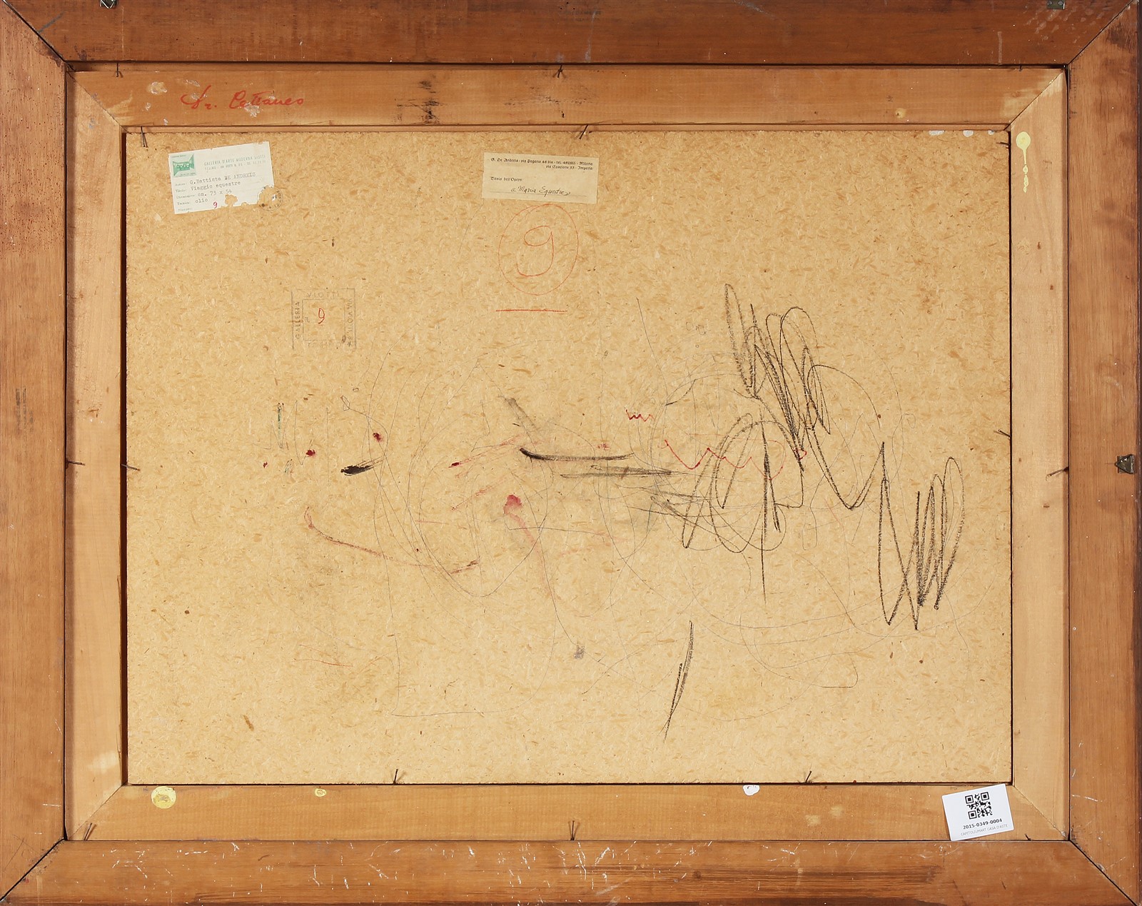 DE ANDREIS GIOVANBATTISTA (n. 1938) Marcia equestre. Olio su tavola. Cm 74,00 x 54,00. Firma in basso al centro. Al retro cartiglio descrittivo a cura dell'artista e a cura della Galleria d'Arte Moderna Viotti, Torino. Cornice presente