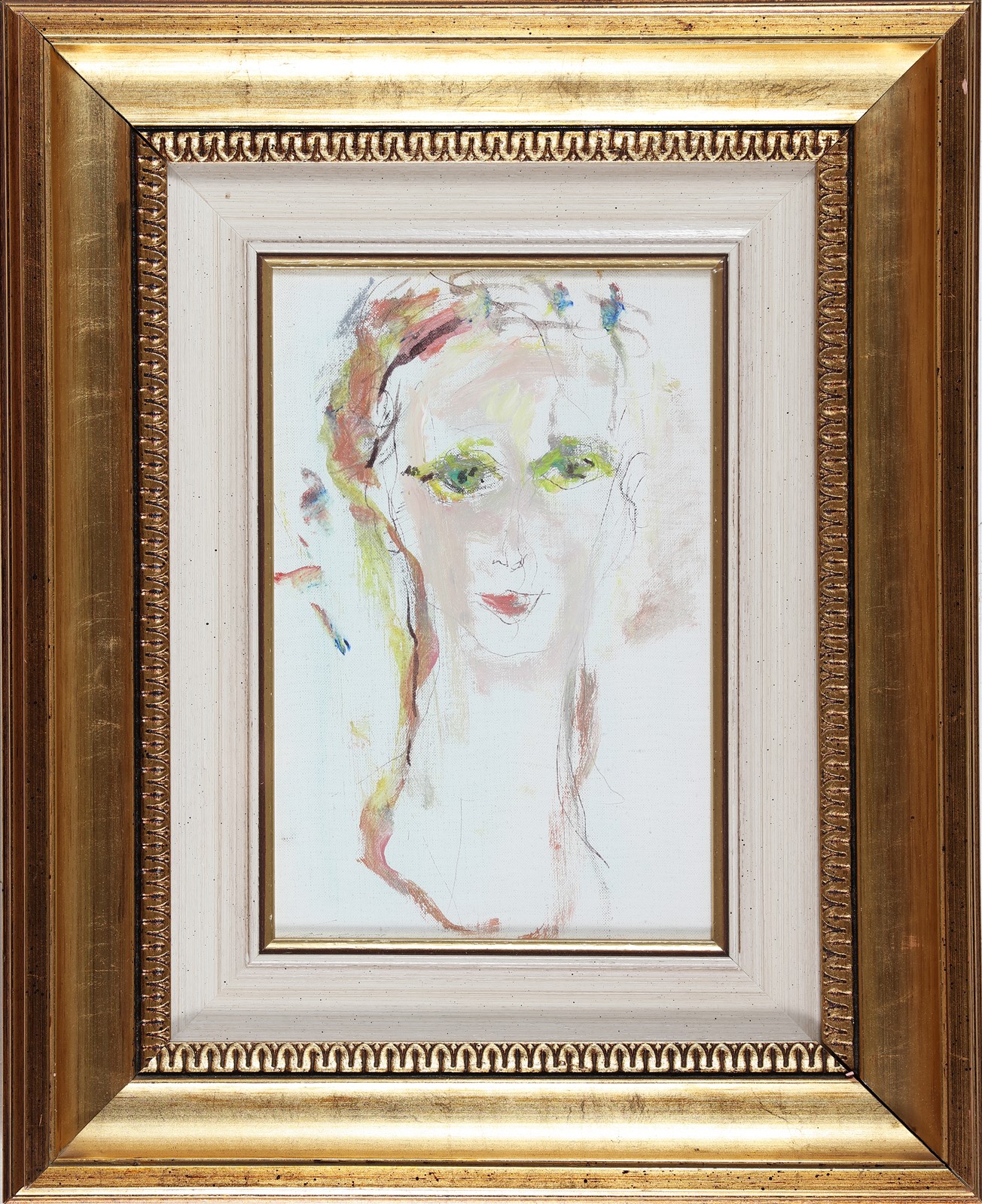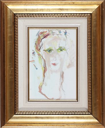 TRECCANI ERNESTO (1920 - 2009) Volto. Olio su tela. Cm 20,00 x 30,00. Firma in basso a sinistra e al retro. Cornice presente