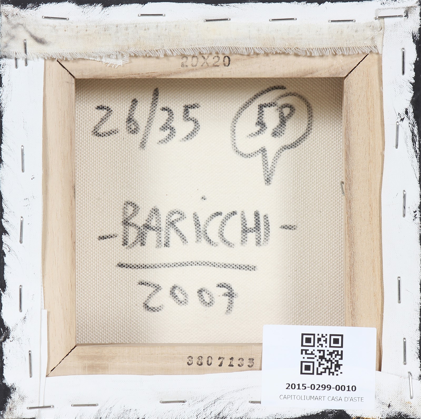 BARICCHI MIRKO (n. 1970) Senza titolo. 2007. Tecnica mista su tela. Cm 20,00 x 20,00. 26/35. Al retro tiratura, firma e anno.