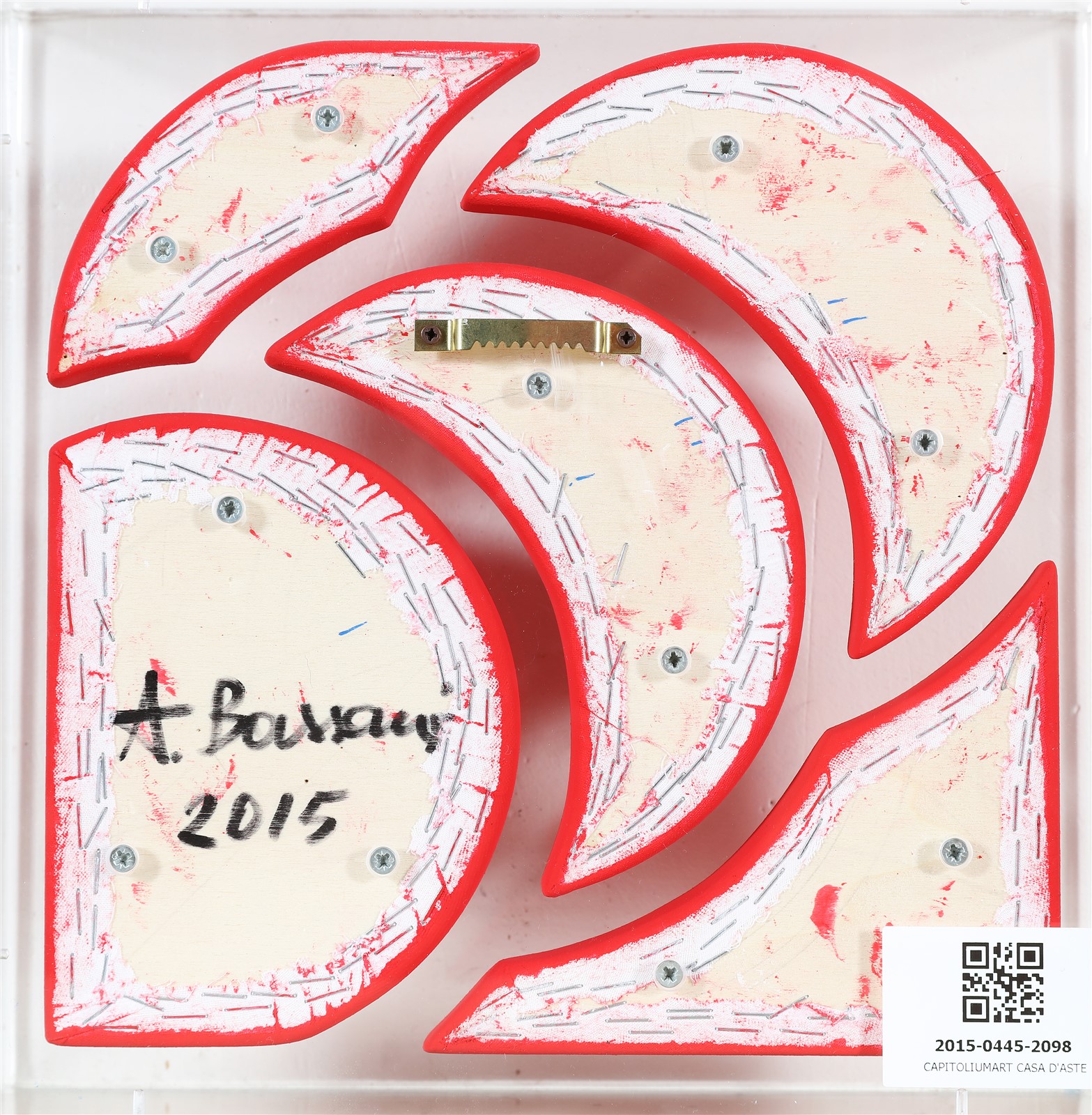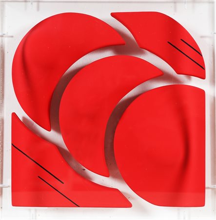 BASSANI ANDREA (n. 1954) Senza titolo. 2015. Acrilico su tela sagomata. Cm 30,00 x 30,00. Al retro firma e anno. Opera contenuta in una teca di plexiglass. Autentica dell'artista su fotografia. Cornice presente