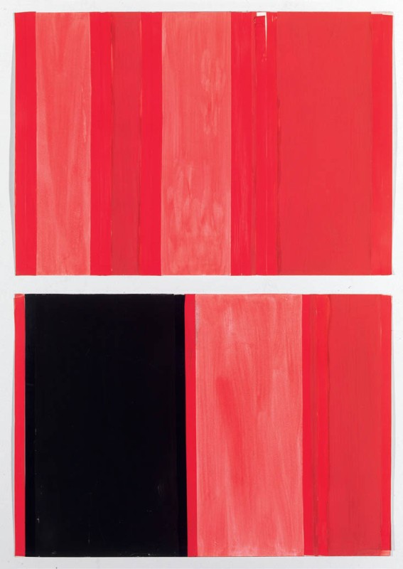 Tano Festa Roma 1938 - 1987 «Rosso» e «Rosso e nero», 1962 Tecnica mista su carta, cm. 35x50 ognuna Al verso di ognuna firma e data: Festa 62: etichetta Galleria La Salita, Roma.