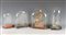 Lotto di quattro teche in vetro con basi in legno contenenti un volatile ed...