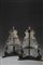 Coppia di alzate angolari a tre ripiani in legno ebanizzato, dorato ed...