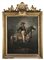Maestro dell' inizio del sec XIX "Luigi Filippo a cavallo con le barricate sullo sfondo" olio su tela (cm 1000x83) in bella cornice dell'epoca in legno intagliato e dorato con cimasa decorata a motivi vegetali e volute. Siglato e datato "H.G. 1831" (difetti) Early 19th-century master "Louis Philp on horseback with barricades in the background" oil on canvas. (defects)