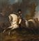 Scuola francese sec. XIX 'Napoleone a cavallo con battaglia sullo sfondo' olio su tela (cm140x132) (lievi difetti) 19th-century French school "Napoleon on horseback with battle in the background" oil on canvas (minor defects)