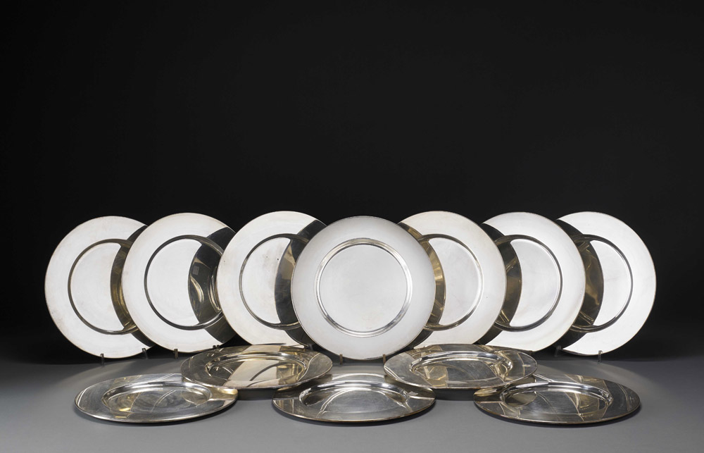 Gruppo di dodici sottopiatti in argento liscio. Punzoni Dabbene Milano (g. 8500) Group of twelved silver underplates