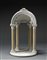 Cupola a valva di conchiglia sorreta da quattro colonne in marmo giallo con capitelli scolpiti(h.cm.102) Shell-shaped dome supported by four marble columns