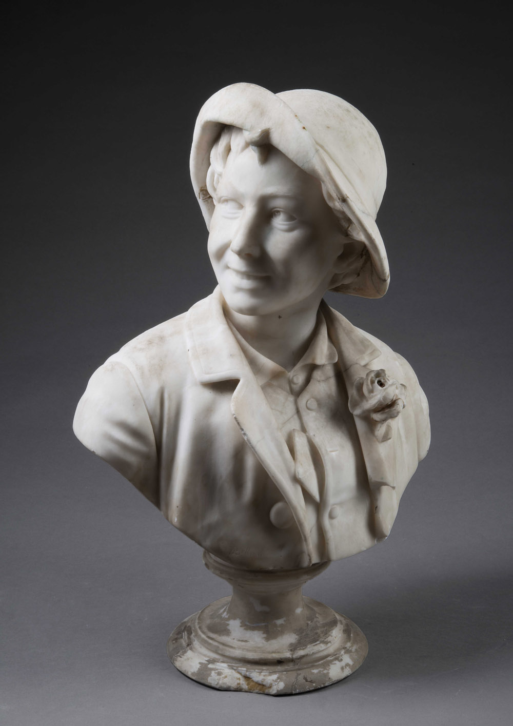 Maestro del XIX secolo "Giovinetto con cappello" scultura in marmo...