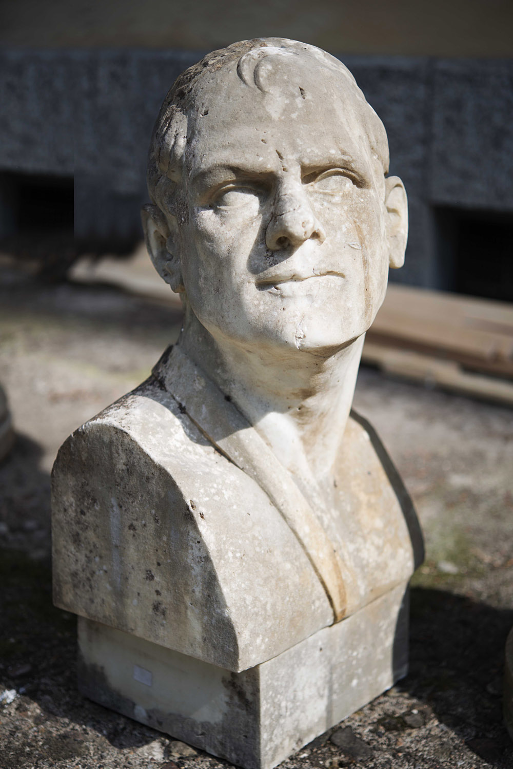 Scultore del sec.XIX "Demostene" mezzobusto in marmo bianco. Iscritto sulla base (h.cm.60x30)(difetti) 19th-century sculptor "Demosthenes" white marble half bust (defects)
