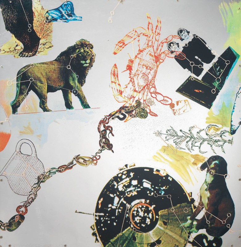 Robert Rauschenberg Port Arthur 1925 - New York 2008 Star quarters n. III, 1971 Serigrafia a colori su perspex, multiplo, cm. 121,5x 121 Firma e data in basso a destra: Rauschenberg [...] 71. Al verso, su un cartone di supporto: Robert Rauschenberg / Star Quarters panel no. III / Exe[cut]ed at Styria Studio (a stencil): etichetta Il Narciso Galleria d'Arte Contemporanea, Roma, con dati dell'opera.