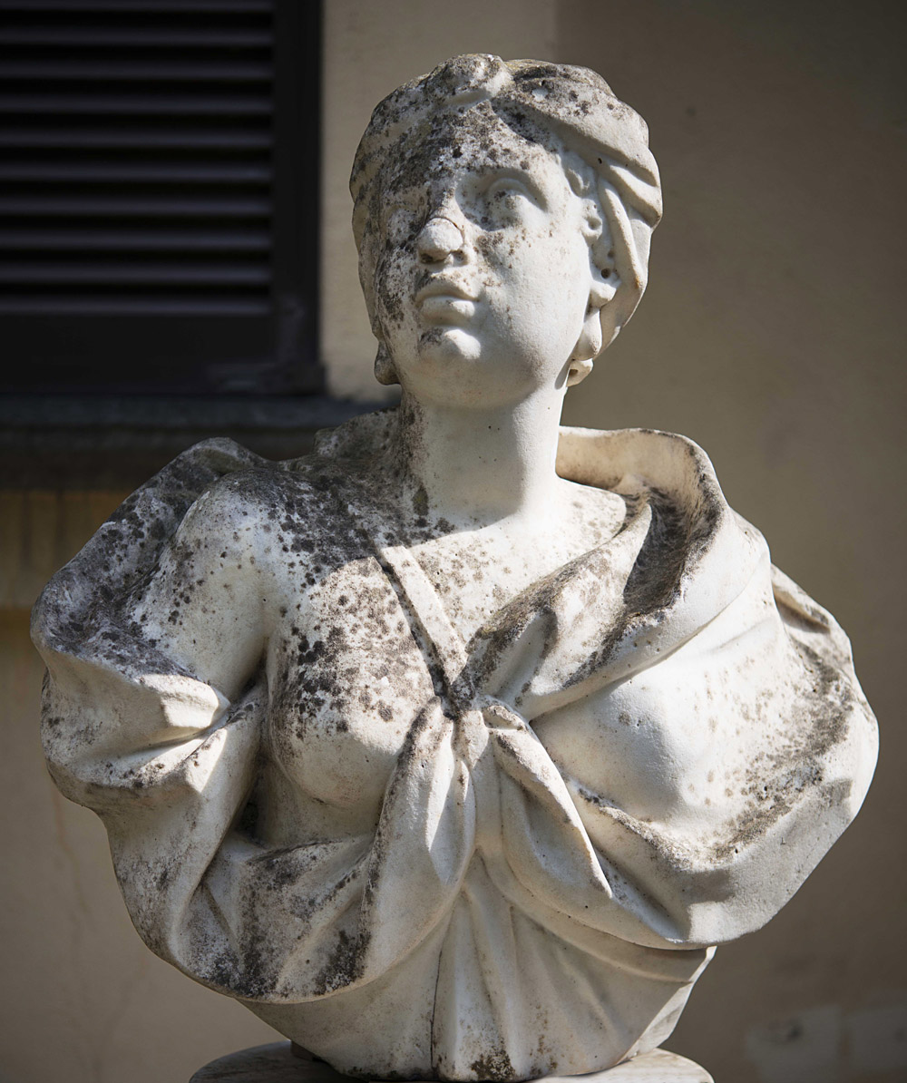 Maestro veneto sec.XVIII "Gentildonna con turbante" scultura in marmo (h.cm.75) 18th-century Venetian master "Noblewoman with turban" marble sculpture