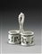 Oliera da tavola in maiolica con decoro policromo a ghirlanda di fiori. Presa...