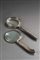Lotto di due lenti di ingrandimento con manici in argento cesellato Lot comprising two magnifying glasses