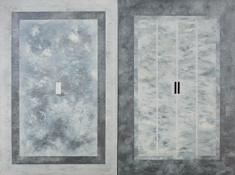 Elena Del Rivero Valencia 1952 Memoria I C - Memoria II C, 1988 Olio e tecnica mista su tela, dittico, cm. 226x301 (due elementi di cm. 226x150,5 ognuno) Firma, data e titolo al verso sulla tela: Elena Del Rivero / Roma 88 / Memoria I C (primo elemento); Elena Del Rivero / Roma 88 / Memoria II C (secondo elemento). Storia: Collezione Cleto Polcina, Roma; Collezione privata