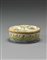 Calamaio in maiolica con porta inchiostro ovale a due vaschette tonde. Decorazione in blu, giallo e verde. Spagna sec XVIII (cm 14x9) (sbeccature) 18th-century Spanish majolica inkpot (chipped)