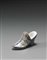 Calamaio in maiolica a forma di piccolo zoccolo decorato "alla Rouen". Francia sec XVIII (Rotture) 18th-century French majolica inkpot (breaks)