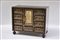 Monetiere in legno ebanizzato, intarsiato e filettato in avorio, fronte a nove cassettini con animali fantastici e antina nella parte centrale a figura di gentiluomo. Fine sec. XVIII (cm 50x42x30) (difetti e restauri) Late 18th-century cabinet (defects and restorations)