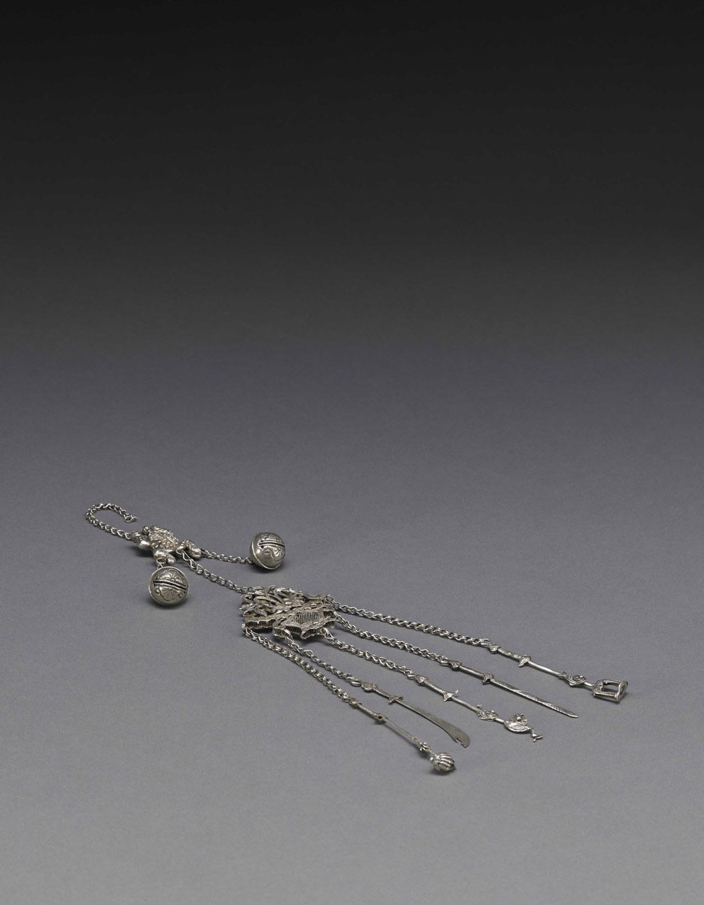 Set di netta orecchie in argento lavorato, con vari piccoli pendenti Cina, XIX/XX secolo Chinese silver ear-pick set