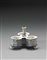 Oliera da tavola in maiolica composta da tre contenitori di forma ottagonale...