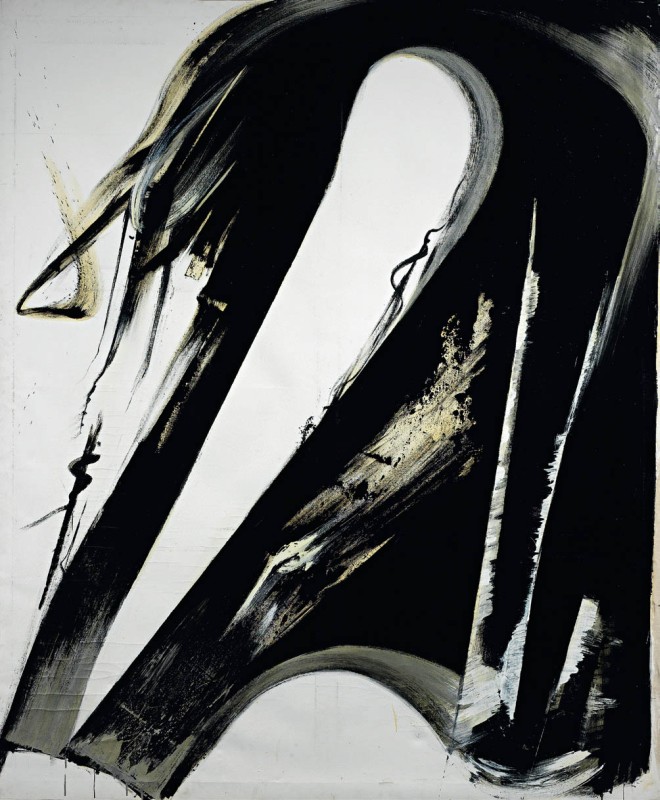 Gianni Asdrubali Tuscania (Vt) 1955 Aggroblanda, 1984 Acrilico su tela, cm. 230x190 Titolo, data e firma al verso sulla tela: "Aggroblanda" / 1984 / Asdrubali; firma e data sul risvolto della tela: Asdrubali 1984; sul telaio scritta: mostra Tel-Aviv / marzo 2002; sulla tela e sul telaio: etichetta e sei timbri Art Gallery Banchi Nuovi, Roma. Foto autenticata dall'artista (in fotocopia).