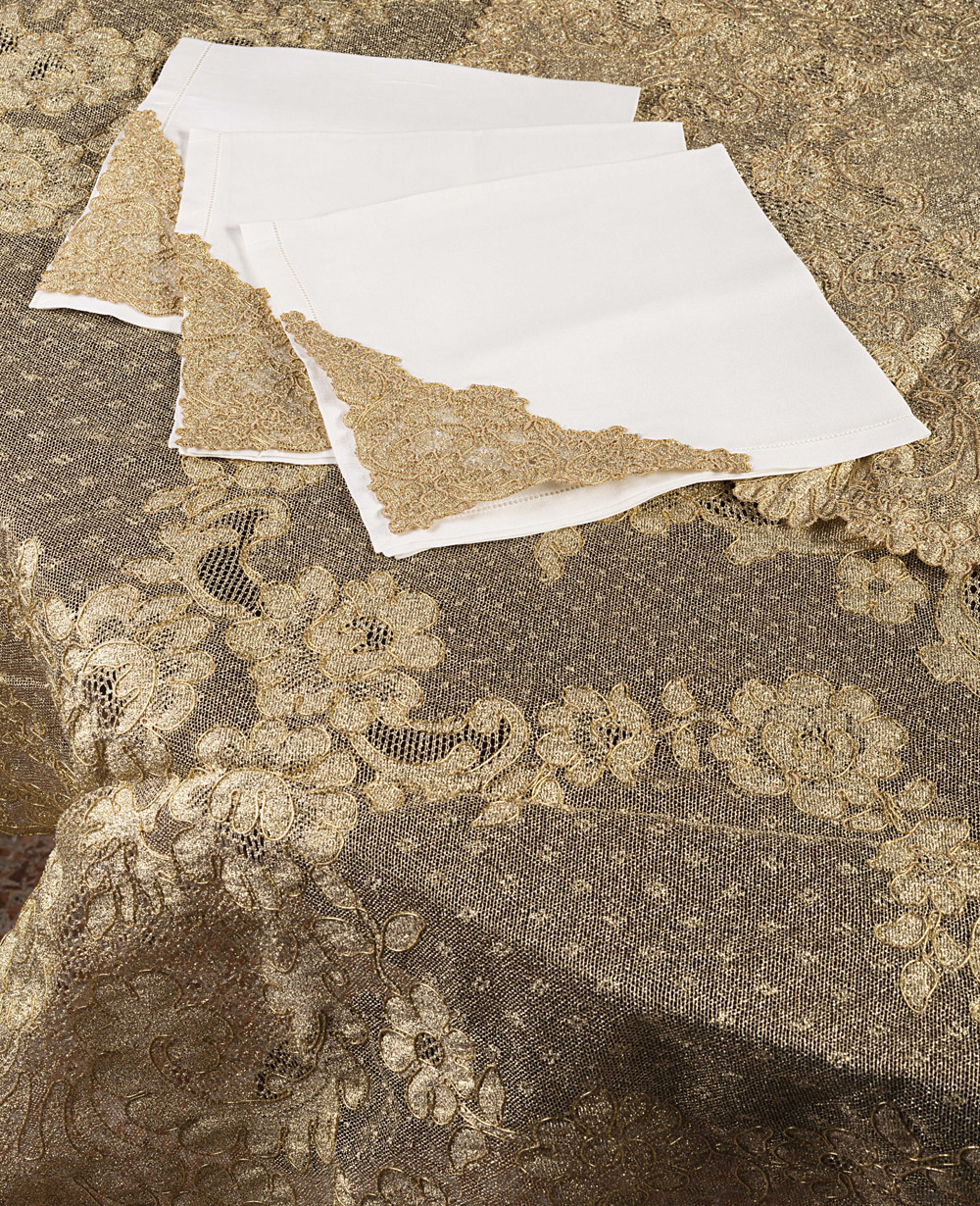 Corredo da tavola composto da tovaglia rotonda in pizzo dorato di Alencon...