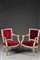 Coppia di poltrone in legno laccato e intagliato con profilo dorato,...