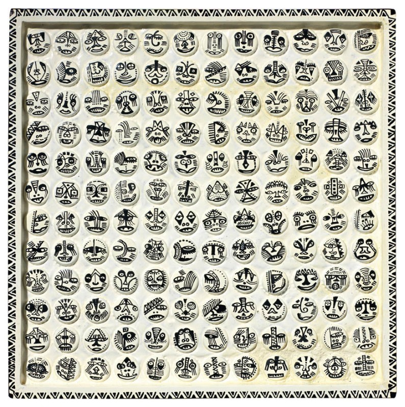Margaret Majo Murewa 1956 Senza titolo, 2008 Tappi di soda e acrilico su tavola, cm. 41x41 Data in basso a destra: 2008.