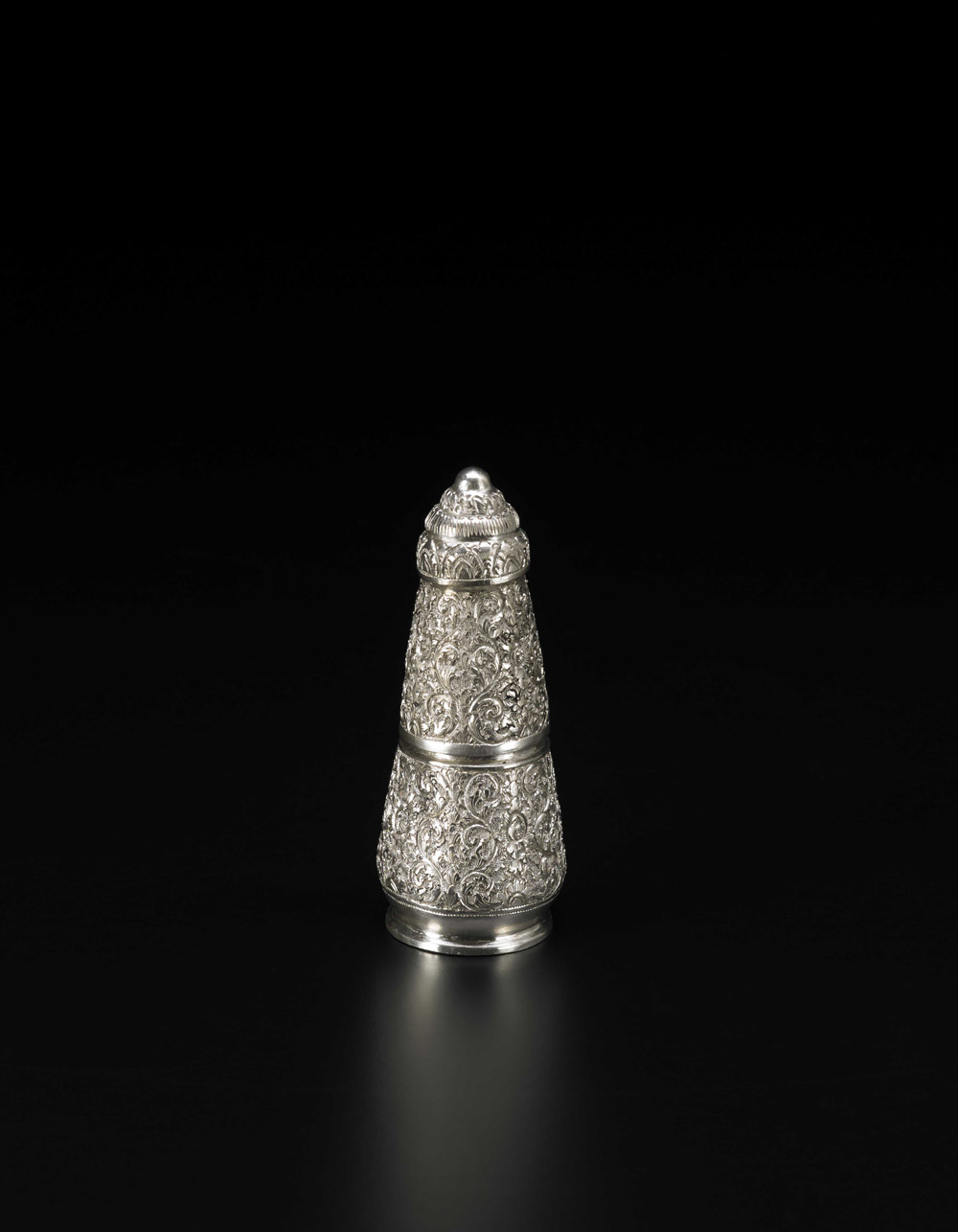 Piccola scatola in argento cesellato con motivi floreali Cambogia, prima metà del sec. XX First half of the 20th-century. Small Cambodian silver box (h cm 12, gr 60)