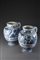 Coppia di versatoi farmaceutici in maiolica monocroma blu su smalto bianco....
