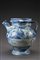 Versatoio farmaceutico in maiolica con decoro ‘a figuretti e paesaggini’ in monocromia blu su smalto bianco. Marca di fabbrica sotto il piede (lanterna)Savona, manifattura Chiodo XVIII secolo (cm 19) (difetti) 18th-century majolica pharmacy jug (defects)