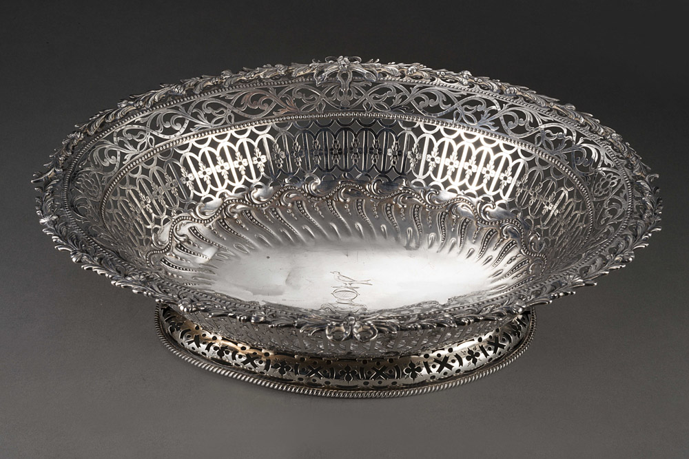 Centrotavola in argento traforato. Argentiere William Plummer. Londra, sec...