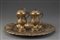 Ampolliera in rame dorato sbalzato a fiori e volute composta da vasoietto...