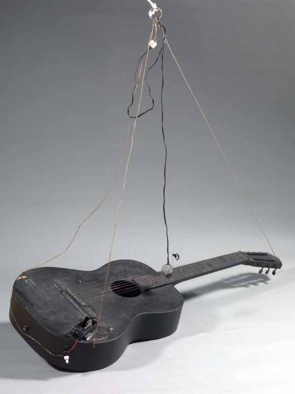 Joe Jones New York 1934 - Wiesbaden 1993 Chitarra, 1973 Assemblaggio di chitarra e fili elettrificati, cm. 65x20x4,5 (chitarra) Firma e data: Joe Jones / Asolo 73.
