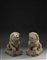 Coppia di grandi leoni Buddhisti in legno intagliato, ciascuno raffigurato...