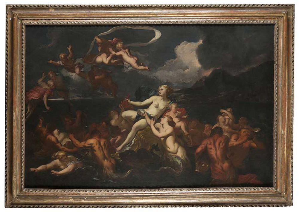 "La nascita di Venere" olio su tela (cm 116x175)In cornice (difetti) "The birth of Venus" oil on canvas (defects)