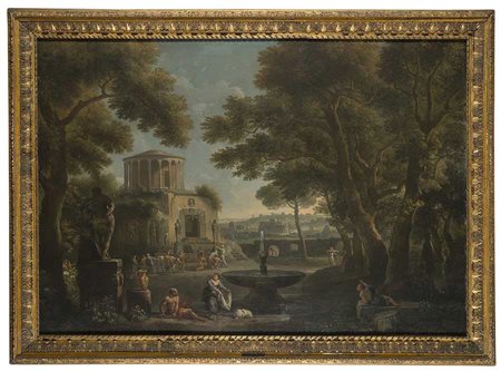 "Veduta fantastica di Roma" olio su tela (cm 115x165)In cornice (difetti) "Imaginary view of Rome" oil on canvas (defects)
