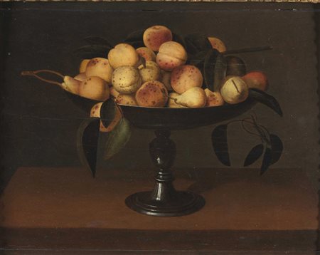 Maestro lombardo del sec. XVII cerchia del Nuvolone "Alzata di frutta" olio...
