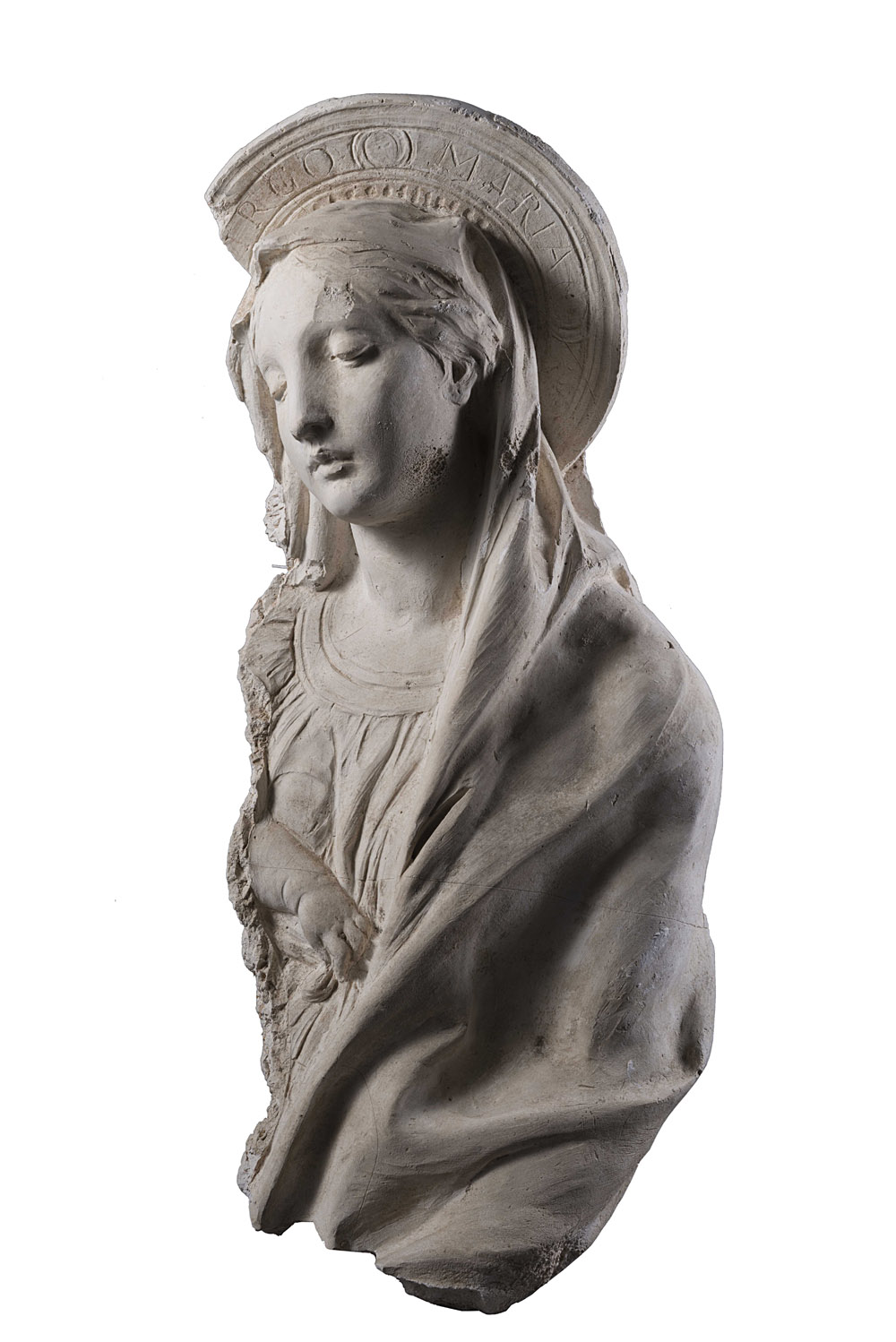 "La Vergine" frammento in gesso. Inizio secolo XIX (cm 65x27) (mancanze) La versione originale in marmo si trova oggi al Museo Sacro Monte di Varese A plaster fragment of the Virgin (losses)