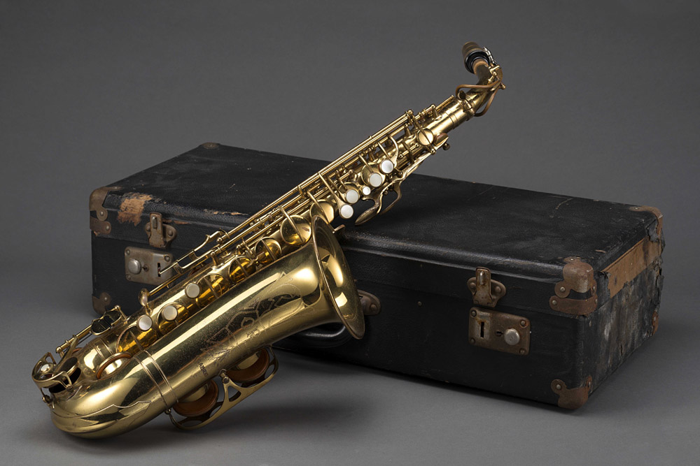 Saxofono contralto di Romeo Orsi, Milano anni' 60: modello Gabrio, in metallo dorato, buone condizioni, marchiato "ORSI/ MILANO/ GABRIO", con custodia Romeo Orsi, Gabrio alto saxophone